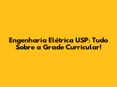 Engenharia Elétrica USP: Tudo Sobre A Grade Curricular!