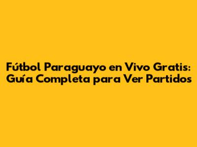 Fútbol Paraguayo En Vivo Gratis: Guía Completa Para Ver Partidos