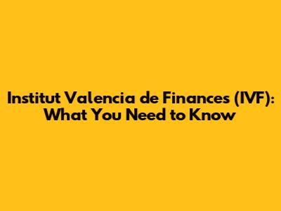 Institut Valencia De Finances (IVF): What You Need To Know