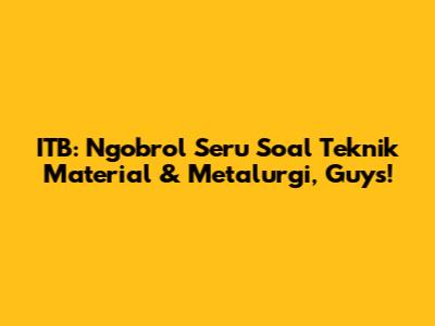 ITB: Belajar Teknik Material & Metalurgi, Kuy!