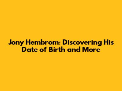 Delving into the specifics of Jony Hembrom's date of birth might seem like a simple quest, but it often opens the door to a broader understanding of the individual and their background. In this article, we'll explore why such details are important, how they can be tracked down, and what kind of insights they might offer. So, whether you're a long-time fan, a curious follower, or simply someone interested in learning more, let's get started on this informative journey.