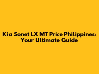 Kia Sonet LX MT Price In The Philippines: A Complete Guide