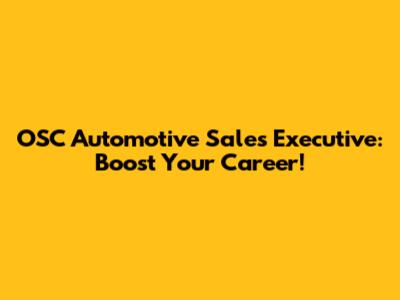 Becoming an OSC Automotive Sales Executive can be a rewarding and lucrative career path for those who are passionate about cars, enjoy working with people, and have a knack for sales. However, it's important to consider the challenges and rewards before making a decision.