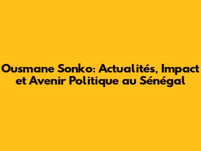 Ousmane Sonko: Actualités, Impact Et Avenir Politique Au Sénégal