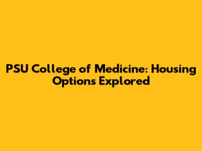 PSU College Of Medicine: Housing Options Explored