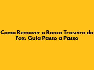 Remoção Do Banco Traseiro Do Fox: Guia Passo A Passo