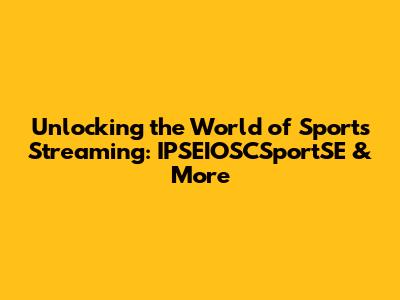 Unlocking The World Of Sports Streaming: IPSEIOSCSportSE & More